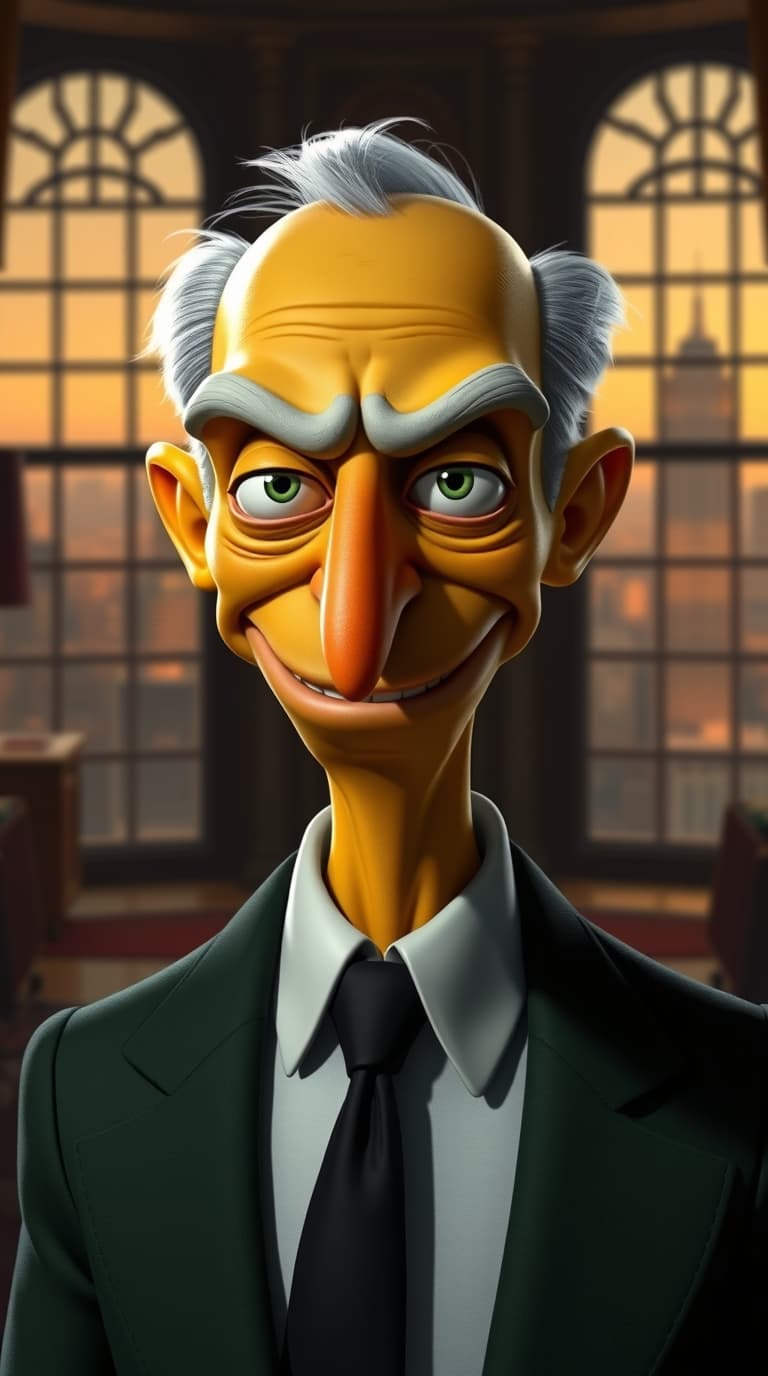 Not C. Monty Burns - not even related. Fred Burns owns lots of things and has lots of money, has a boot-lick lackey that he calls Smithers even thoug...